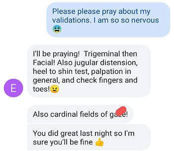 Validations. Just hearing the word brings back the anxiety you felt! Your siblings will allow you to perform blood pressure and heart rate checks and cranial nerve exams to your heart’s content. They are definitely the reason you will pass all of your check-offs!! And when you are feeling especially nervous, just send a text to your pre-med brother. He knows the material better than you do, so he’s got you covered 🙂