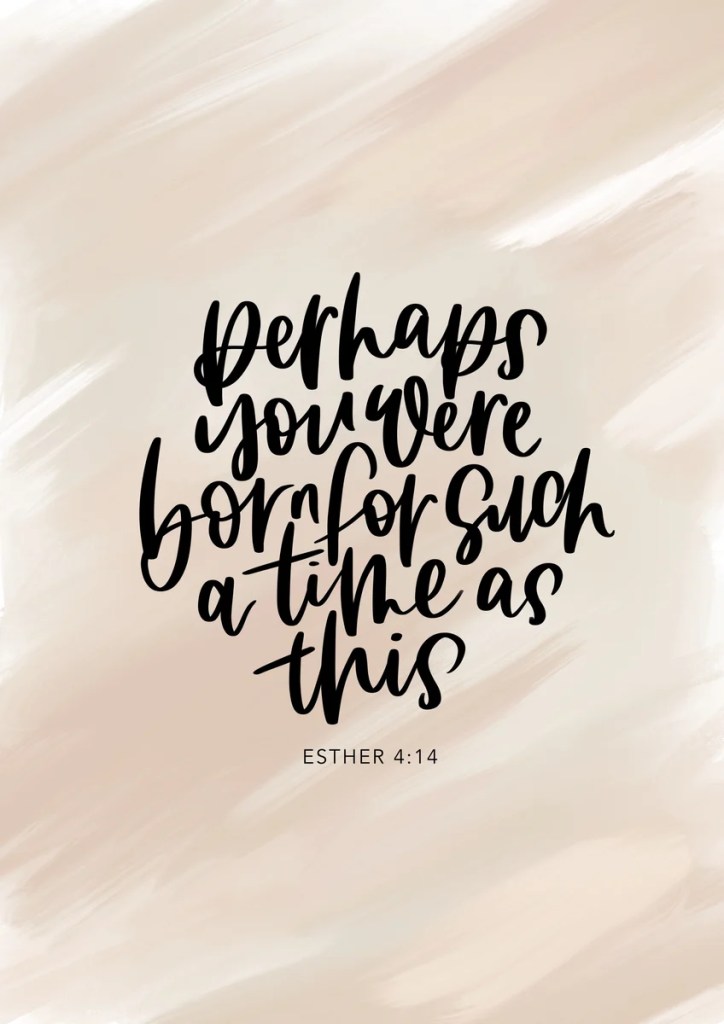One book of the Bible that has always had a special meaning for me is the book of Esther. In that whole book, God’s name is not mentioned one time. Yet it’s impossible to read Esther without being overwhelmed with the presence of God and His sovereignty over seemingly impossible tragedy for His people. When Esther is confronted by Mordecai and asked to intervene for her people, she is understandably filled with fear. There is a very high chance of her being killed by the king before any supplication can even leave her lips. Yet Mordecai tells her, “And who knows but that you have come to your royal position for such a time as this?” God placed Esther in that household, at that moment for such a time as this.